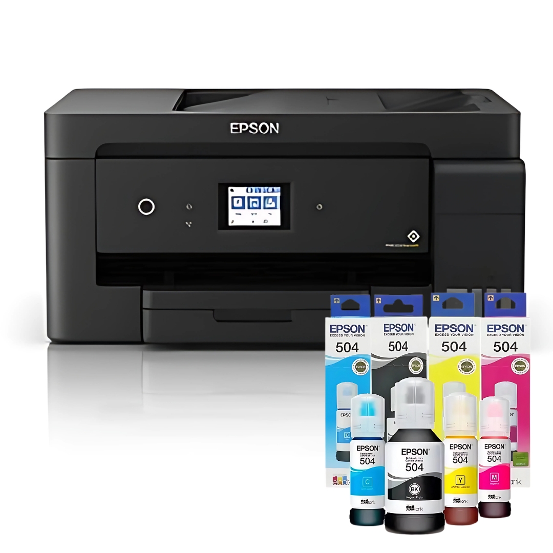 La nueva multifuncional inalámbrica EcoTank 4 en 1 L14150 te ofrece impresión 100% sin cartuchos con soporte para formatos anchos hasta A3+, con botellas de tinta diseñadas para evitar derrames y codificadas para llenado fácil de cada color.